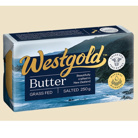 Bơ nhạt hiệu Westgold là sản phẩm cao cấp của hãng Westland Milk – New Zealand, bơ được làm từ nguồn nguyên liệu cao cấp, được tuyển chọn kỹ lưỡng, đảm bảo vệ sinh an toàn thực phẩm