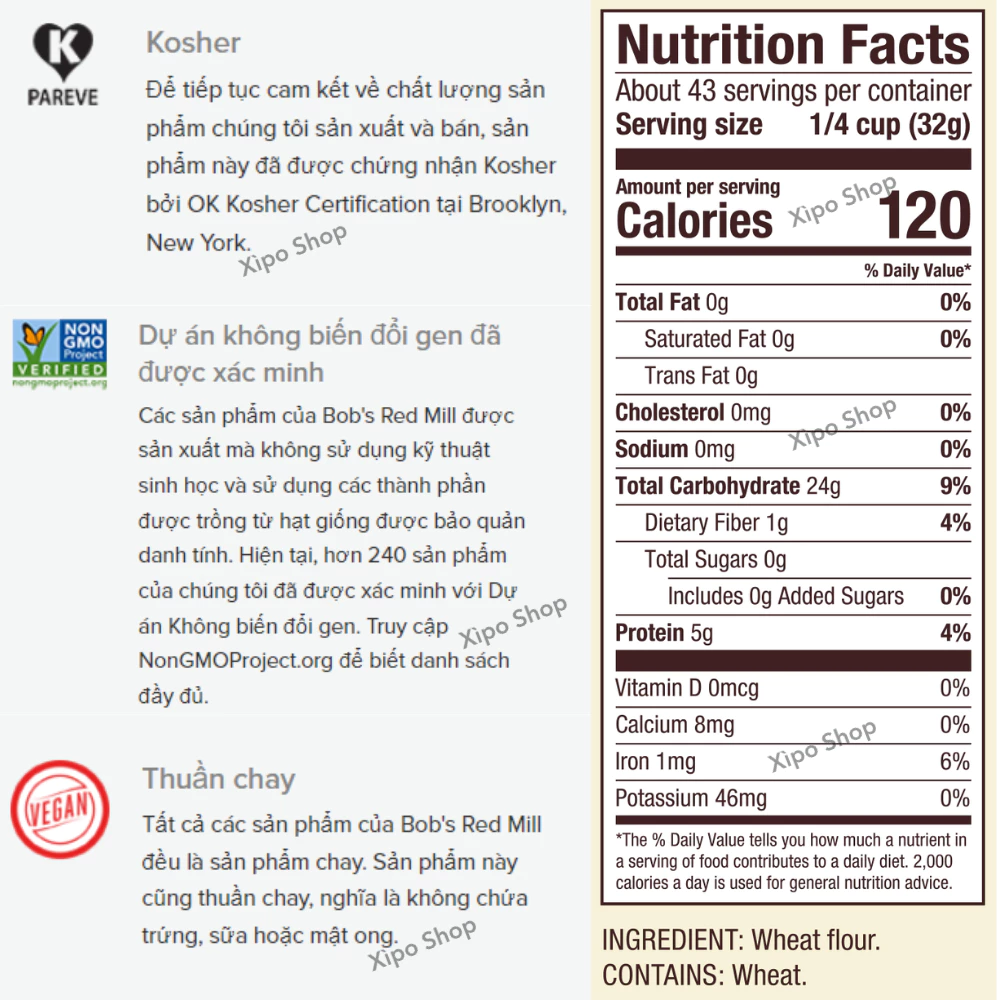 - Nhà sản xuất : Bob's Red Mill Natural Foods, Inc.