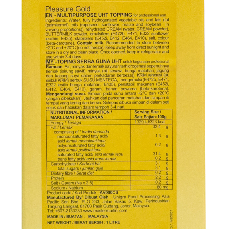 Kem đa dụng UHT Pleasure Gold – Multipurpose UHT Topping 1Lít