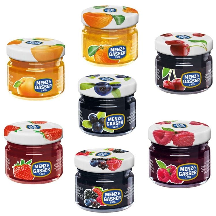 - Sản phẩm ngọt và mặn của Menz & Gasser đều có vị ngon tự nhiên, chất lượng cao với các thành phần được chọn lọc kĩ lưỡng và kinh nghiệm chế biến lâu đời được phát huy trên dây chuyền sản xuất hiện đại, xử lý hơn 20 định dạng lọ thủy tinh, với các hình dạng và kích thước khác nhau từ 30 đến 545 ml, có sẵn tròn hoặc vuông, bằng nhựa hoặc thủy tinh, với kích thước phần khác nhau từ 14 đến 48 gram.