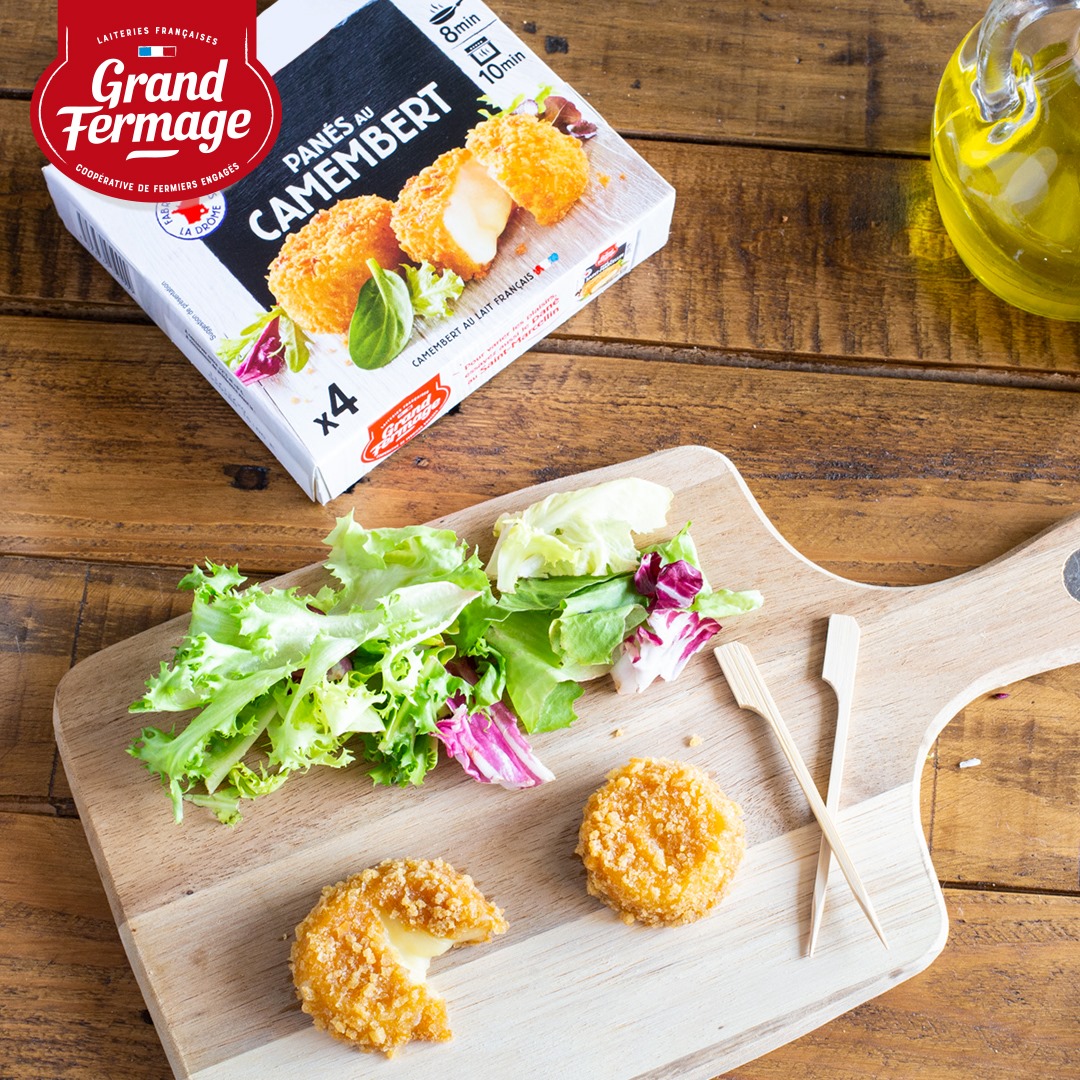 Những miếng phô mai Camembert tẩm bột Grand Fermage kết hợp kết cấu giòn tan của lớp bột chiên xù với phần nhân ấm nóng, tan chảy. Với hương vị Camembert nhẹ nhàng, cân bằng, loại phô mai này là món ăn lý tưởng cho cả những người sành ăn lẫn những người yêu thích Camembert.