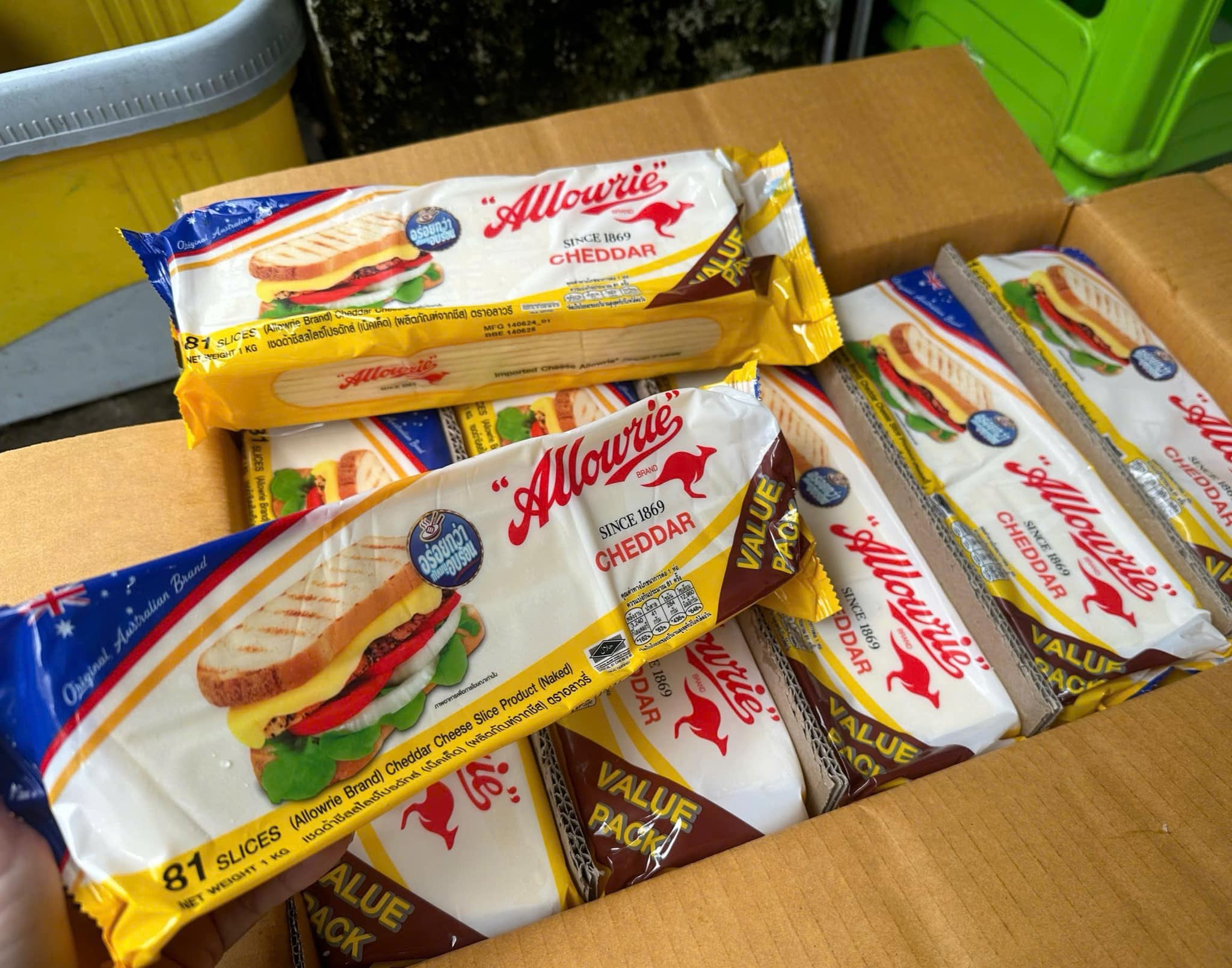 Phô Mai Lát Cheddar Allowrie 1Kg - Cheddar Cheese Slice Allowrie Allowrie (81Lát)