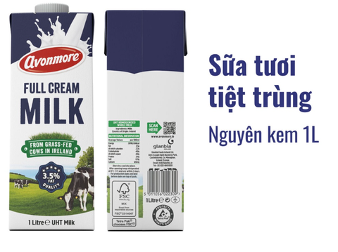 Sữa tiệt trùng nguyên chất Avonmore 1 lít – Avonmore UHT Full Cream 1L.