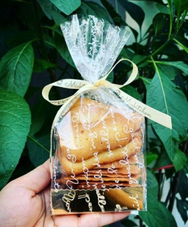 Túi đựng bánh quy trong chữ trắng kèm đế vàng - Set 50 cái