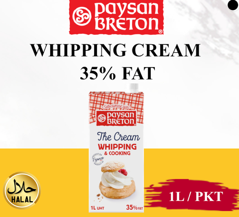- A UHT Sterilised 35% whipping Cream which guarantees a long shelf life while preserving their nutritional and taste quality at the same time.