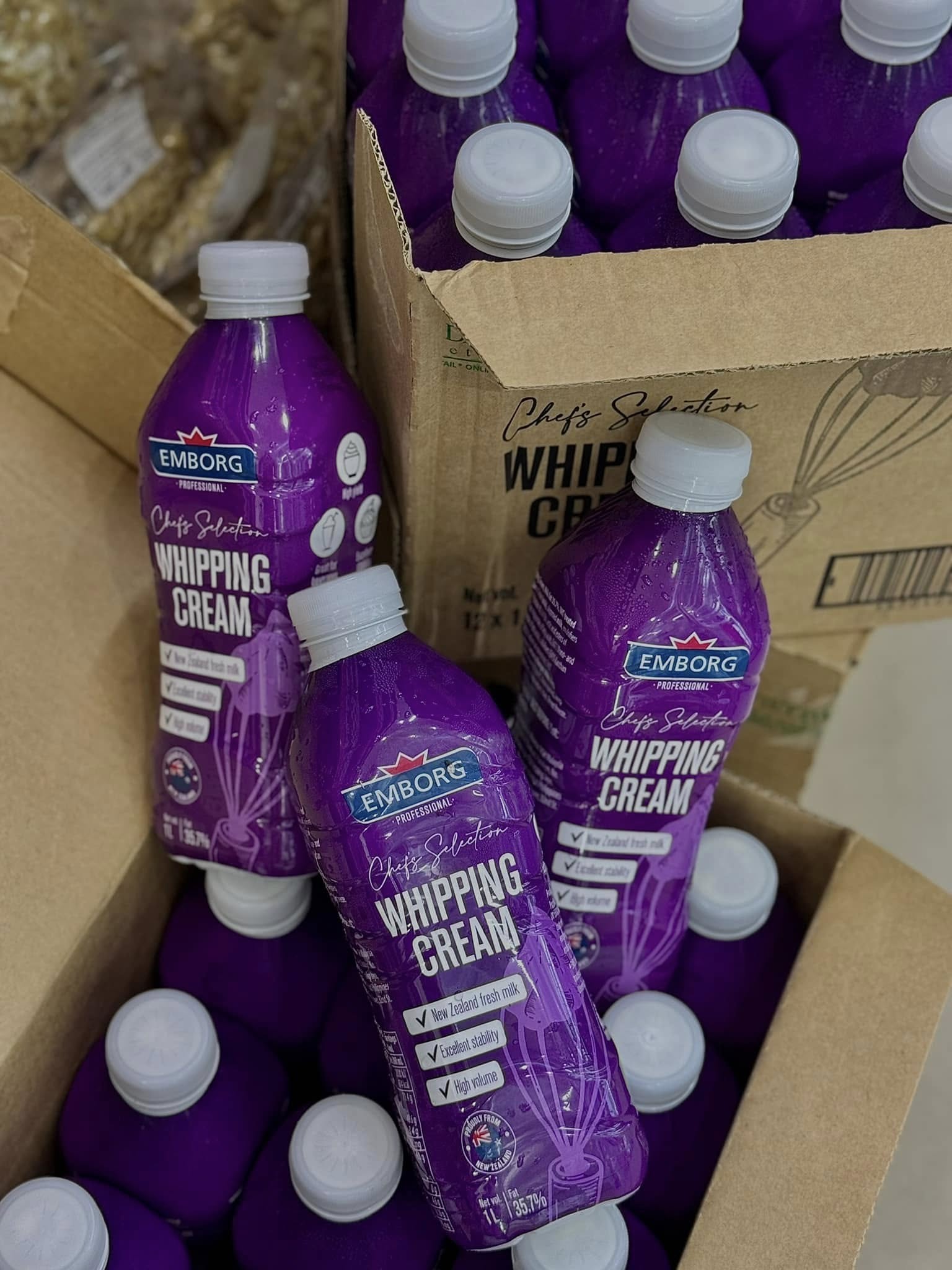 Kem làm từ sữa bò tươi Whipping Cream Emborg là dòng kem sữa động vật với độ béo cao vị ngậy, thơm của kem sữa và tan trong miệng.